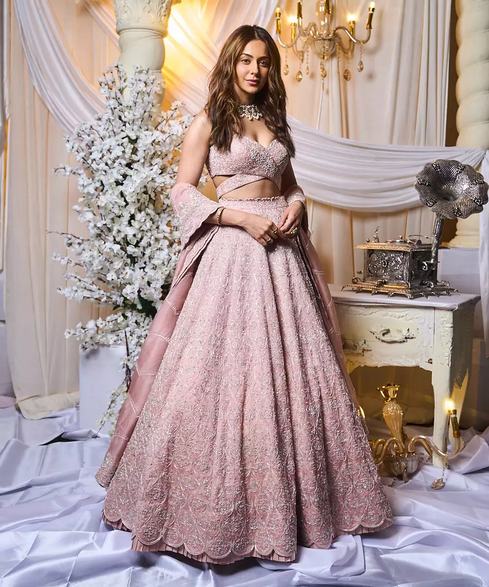 Lehengas are always a hit when it comes to sangeet ceremony dress choices. You can go for a lightweight lehenga with mirror work, sequins, or colorful embroidery to make a statement on the dance floor. For a more modern touch, try a crop top and skirt set or a peplum-style lehenga. These are easy to move around in and look super fashionable too.
