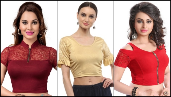 If you want something elegant and stylish then go for a Lycra material blouse. It has an amazing shine on itself and goes well with every saree. Also, the Lycra material is found with many options, it gives you a choice to do mix and match. From collared to zipper blouse, you find them in many types. The best part about them is that it feels great on the skin.