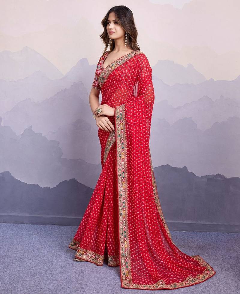 The second day is devoted to Maa Brahmacharini, and we wear red on this day. Red is the color of passion, energy, and determination. This color is perfect for this day, as it reflects the devotion of the goddess. Choose a red saree in chiffon or georgette. You will radiate positive energy and power when you wear this color.