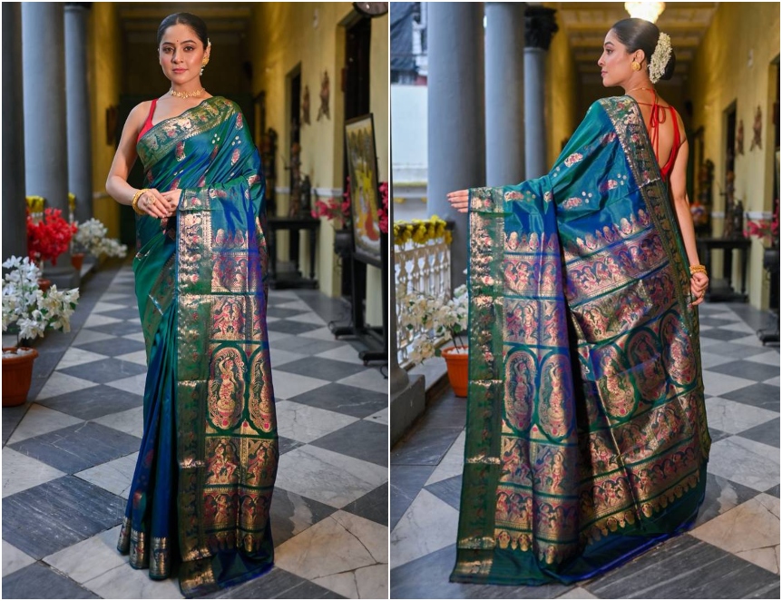 - A blue saree in either peacock or teal shade instantly brightens your complexion and gives you that queen-like look