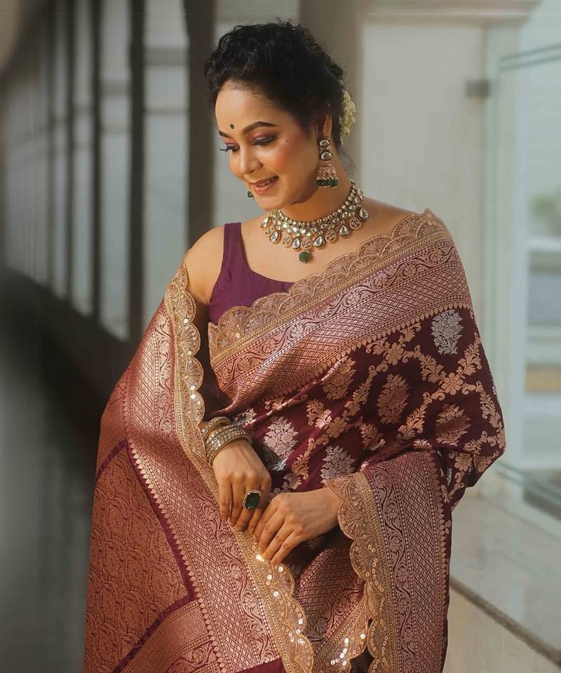 Maroon saree is one of the classic outfits, which never goes out of fashion. The rich and pretty colour is perfect for any occasion – from your wedding day, to a picnic with the family or even an evening night out. Choose a maroon saree which is unique and different from others, and you exactly follow this sentence, no doubt it gives you a classy and sassy look.
