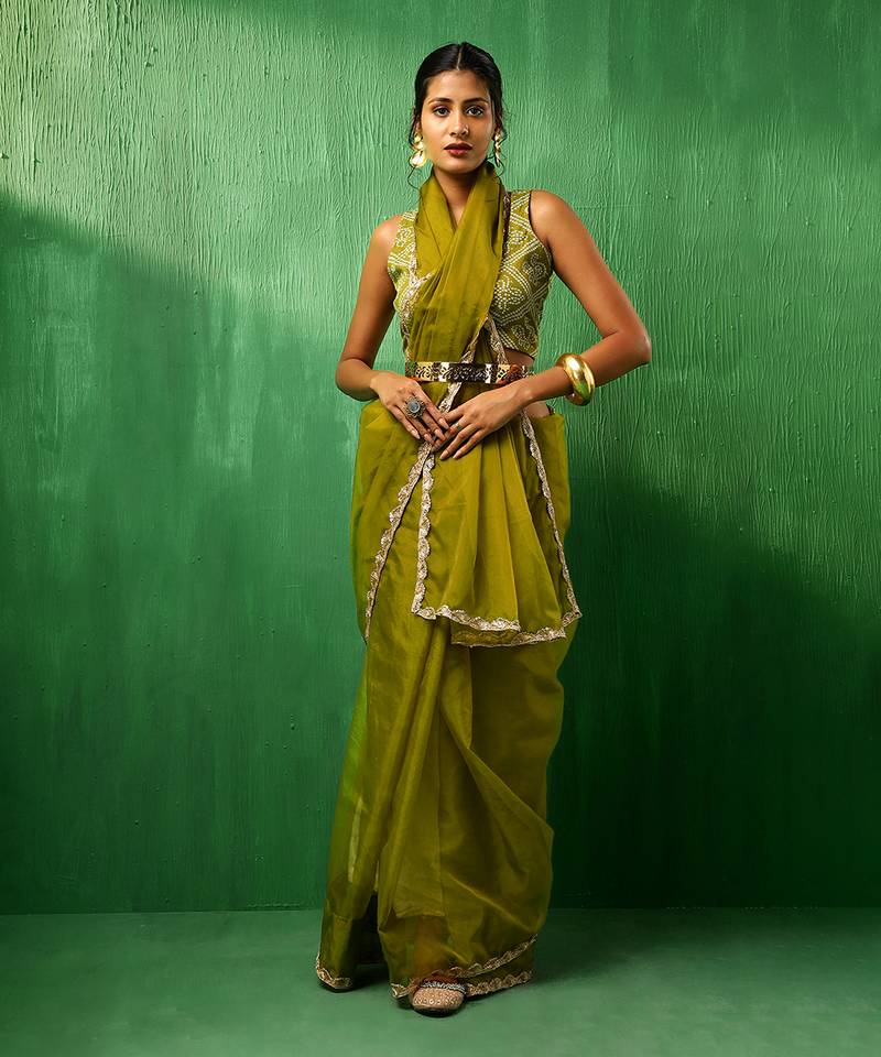 If worn with the right drape and blouse style, everyone can look stunning for Mehendi.