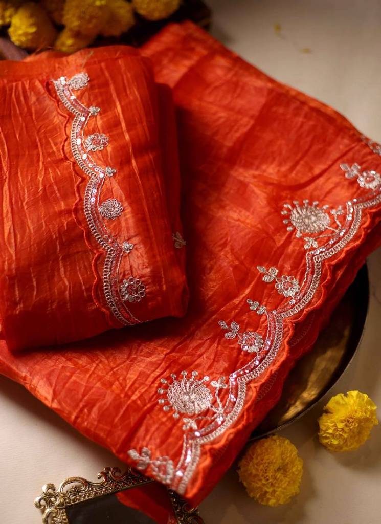Orange looks lovely on most skin tones and fabric types. The shade feels festive yet versatile, which means it works for multiple moods and environments. With modern designs leaning toward comfort and simplicity, orange sarees fit naturally into current fashion preferences.
