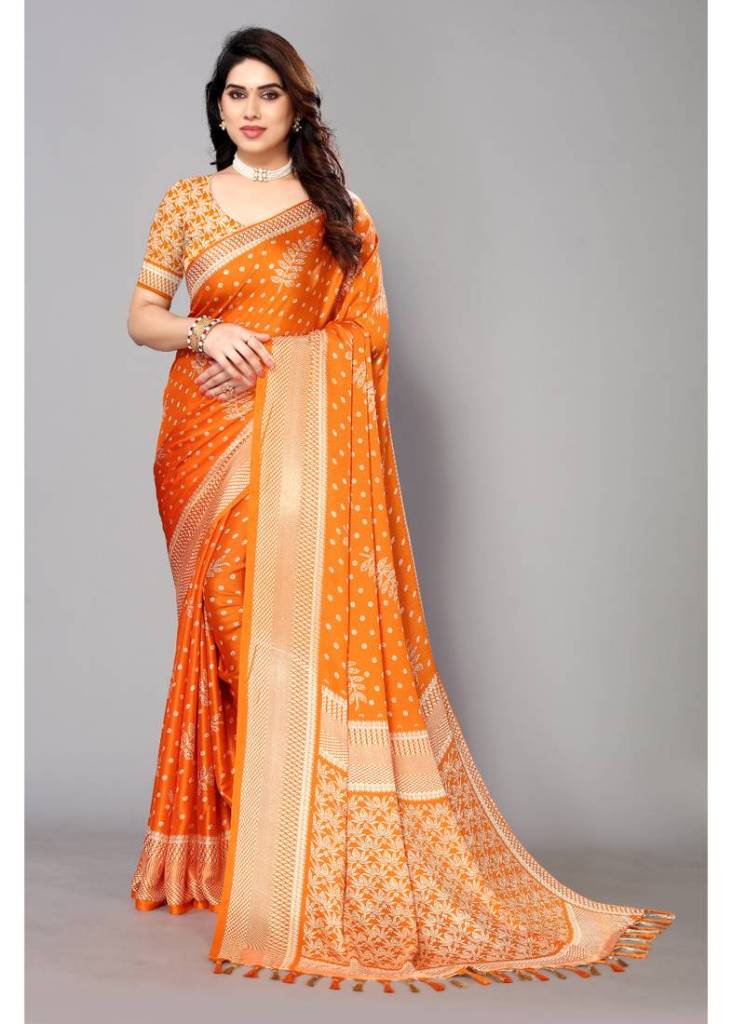 4. Soft Pattern Orange Sarees in Print