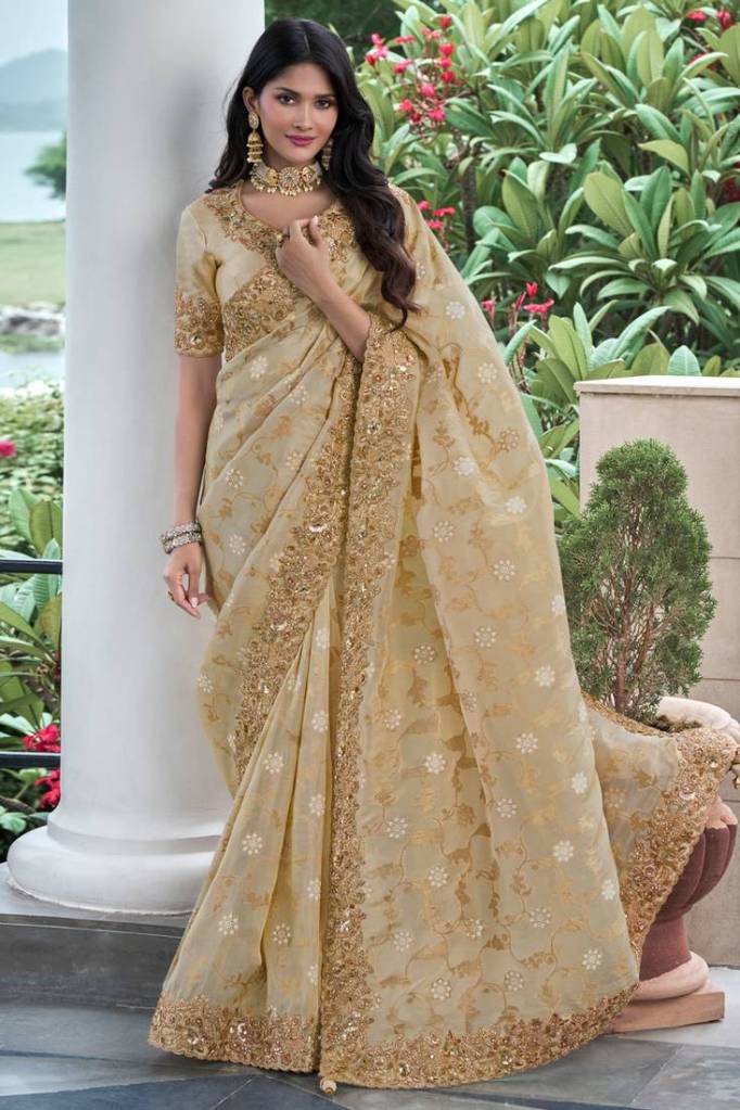 Traditional craftsmanship meets the evolving trends of fashion in heavy work sarees. Even as the embroidery techniques may come from long-standing traditions, designers are still putting new patterns and styling ideas into it.