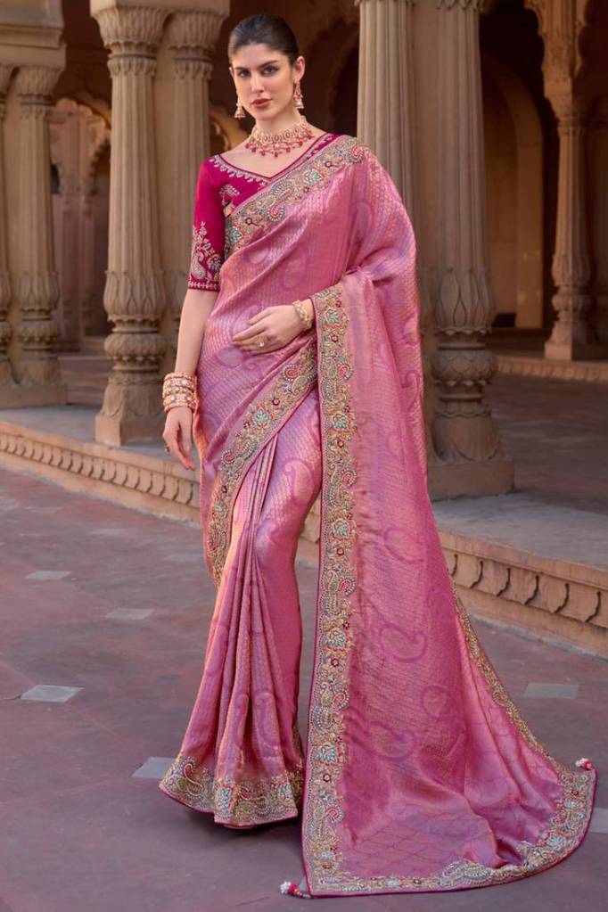 Due to the intricacy of the work, it is an obvious choice when you want to stand out in a crowd. When worn at weddings or big celebrations, it makes a bold statement. And we all know a simple saree base becomes the most amazing thing you will ever wear as soon as heavy work is added to it.